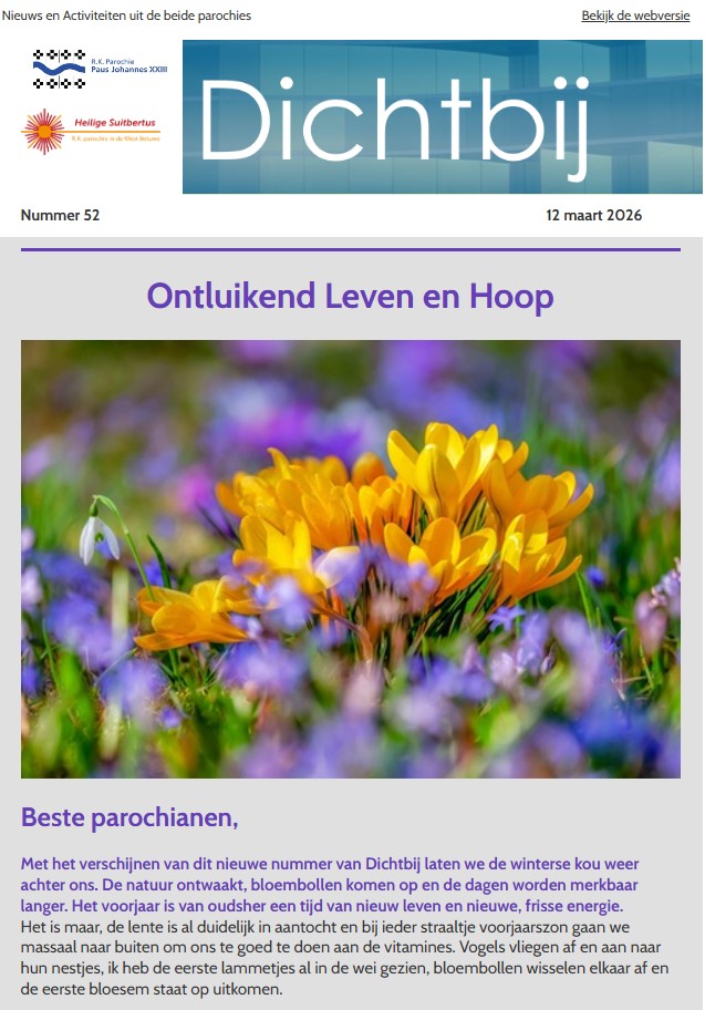 Heeft u interessant nieuws of een activiteit in uw gemeenschap, vertel het ons via dichtbij@2parochies.nl!